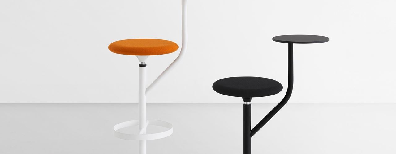 Аарон имеет металлический стержень, который делится на две части: одна для сиденья, другая для столика. Это решение идеально подходит для офисов и кафе.