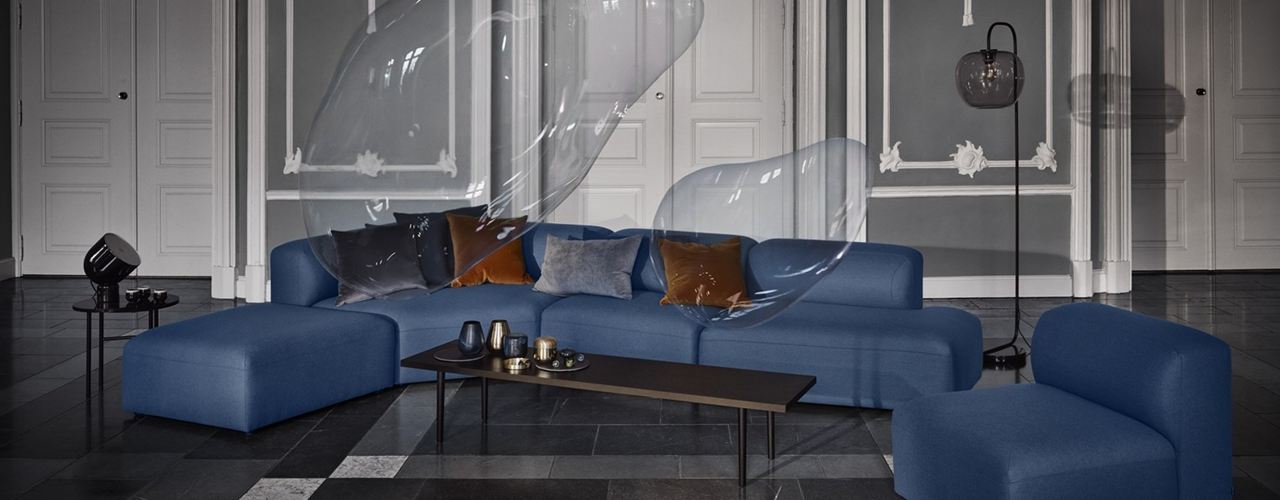 Коллекция включает более 150 уникальных дизайнов, которые сочетают в себе авангардную эстетику 70-х и современные скандинавские элементы. Основные материалы: бархат, латунь, мрамор и цветное стекло.