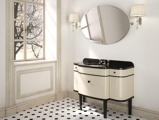 Гладкие линии, глянцевый лак и кремовые оттенки создают уникальный ансамбль, который напоминает о роскошных интерьерах прошлого.