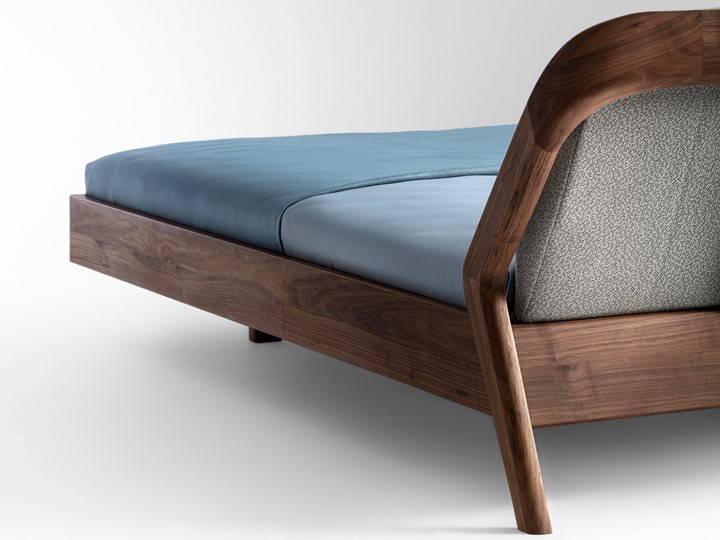 Кровать FRIDAY NIGHT от Formstelle предлагает уют и инновационный дизайн, сочетая текстиль и дерево в гармонии.