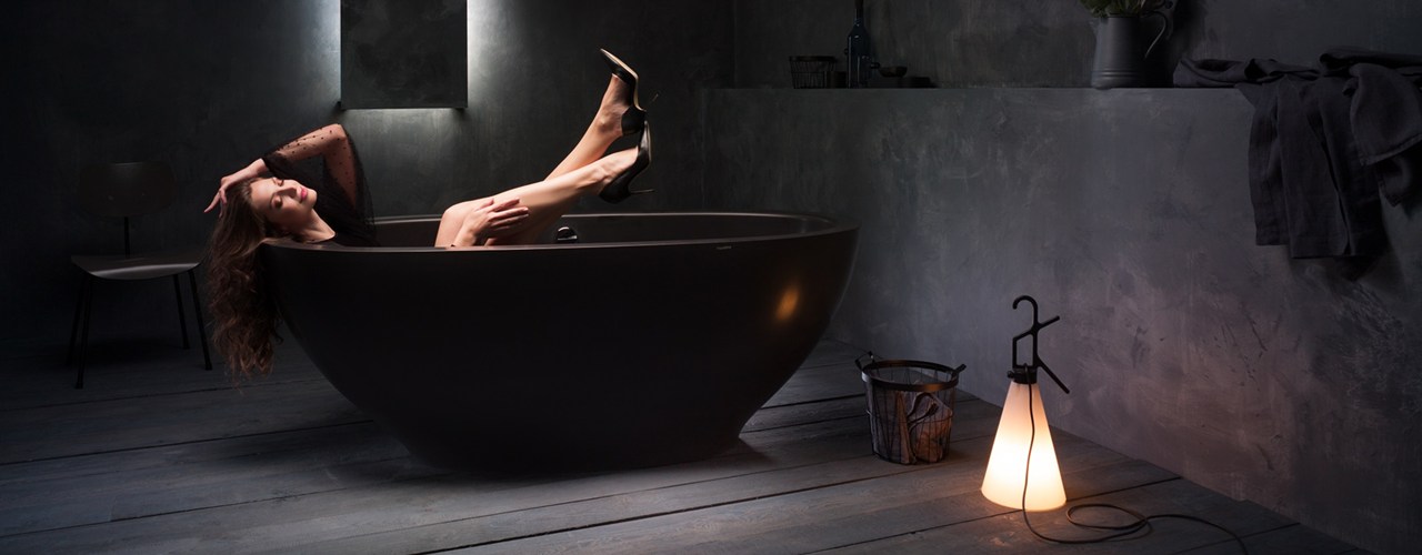 Отделка из графитово-черного матового материала и стильный дизайн делают ванну уникальной и элегантной.