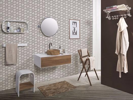 Коллекция включает умывальники, зеркала и аксессуары, которые сочетают в себе современные технологии и традиционные материалы, создавая уникальный интерьер ванной комнаты.