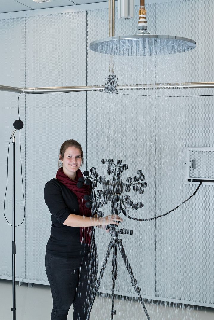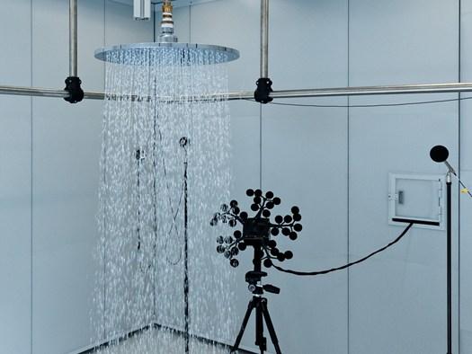 Для улучшения звука воды используются специальные акустические характеристики смесителей и душевых леек. Hansgrohe проводит стандартизированные тесты и сертификацию продукции по уровню шума.