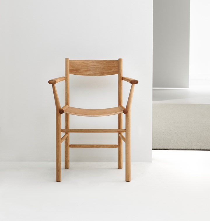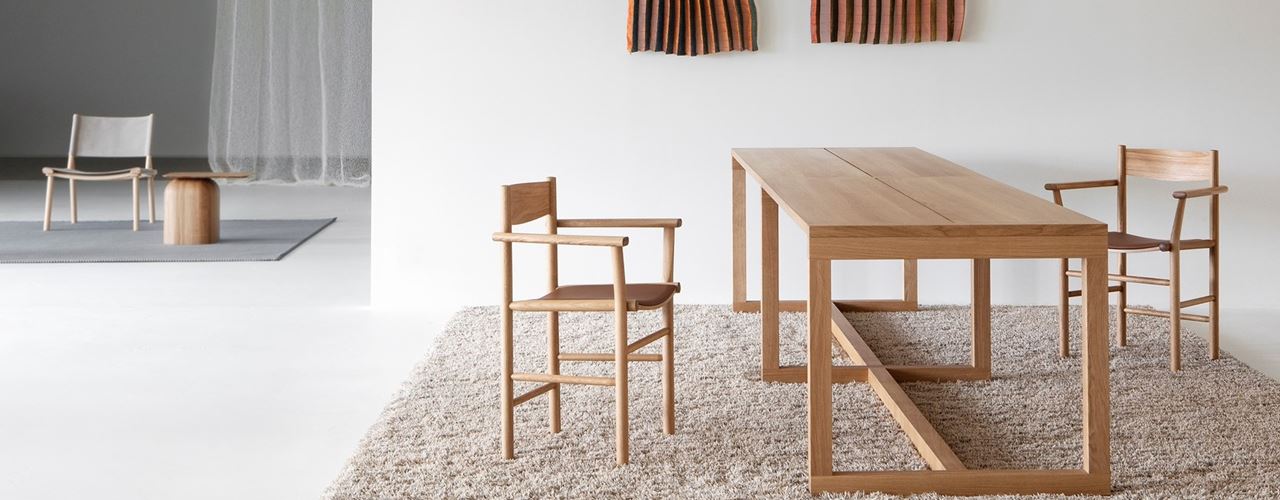 Стол FRAME из ясеня и дуба с уникальной обработкой и устойчивой конструкцией. Подлокотник Akademia от Kaksikko обеспечивает комфорт и стиль.