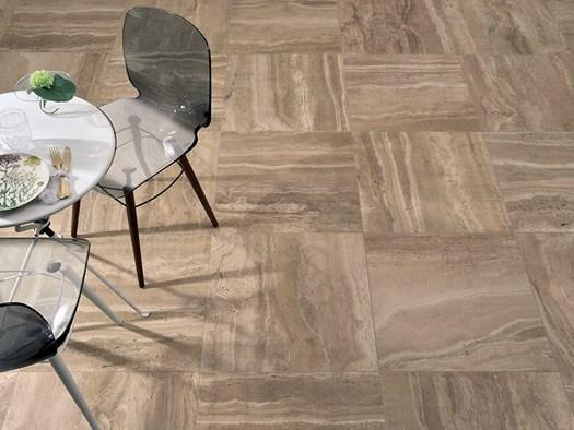 Плитка Reverso вдохновлена текстурой травертина и отличается высокой прочностью.