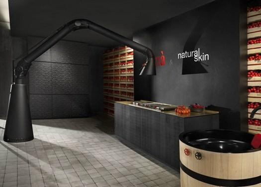 Капюшон Mammut от Minacciolo предлагает уникальный дизайн и высокую функциональность. Он доступен в нескольких вариантах установки: настенный, потолочный или напольный, что позволяет адаптировать его под любые условия.