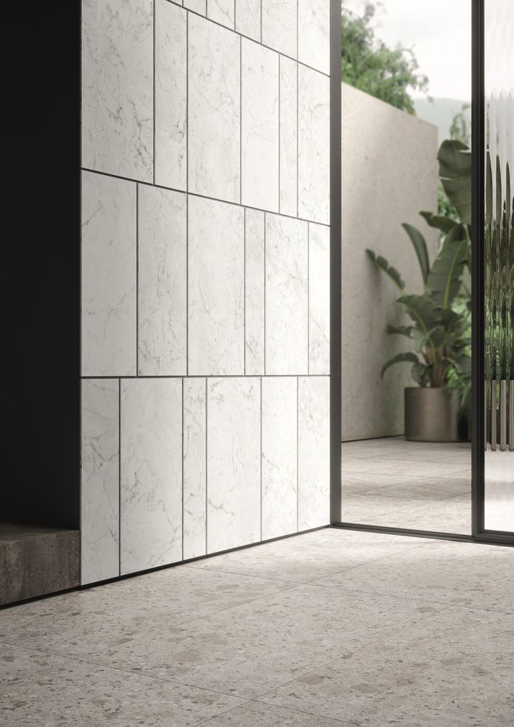 Это новая отделка из серии Ultra Marmi от Ariostea с уникальной текстурой и цветовой гаммой, имитирующей мрамор.
