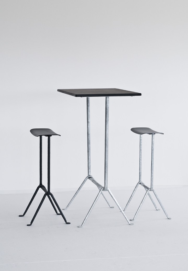 Бренд предлагает столы и стулья, где структура из кованого железа поддерживает столешницы из различных материалов.