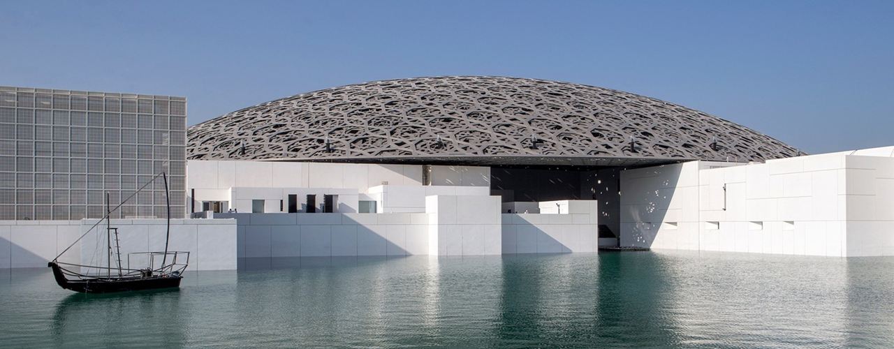 Здание Лувра Абу-Даби, спроектированное Жаном Нувелем, воплощает в себе идею модерна, перекликающегося с традицией. Основной акцент сделан на купольной крыше из металла, которая поддерживается всего четырьмя колоннами. Это не только техническое, но и эстетическое достижение, создающее уникальную игру света и тени.