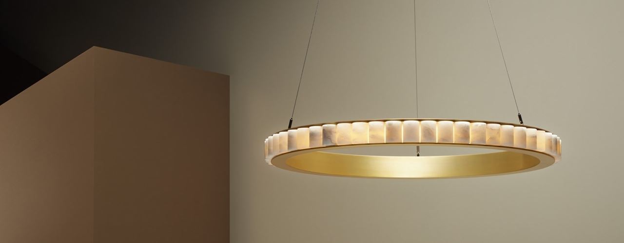 Люстры Avalon изготавливаются из алебастра и обрамлены латунью или бронзой. Это сочетание создает изысканное освещение и долговечность.