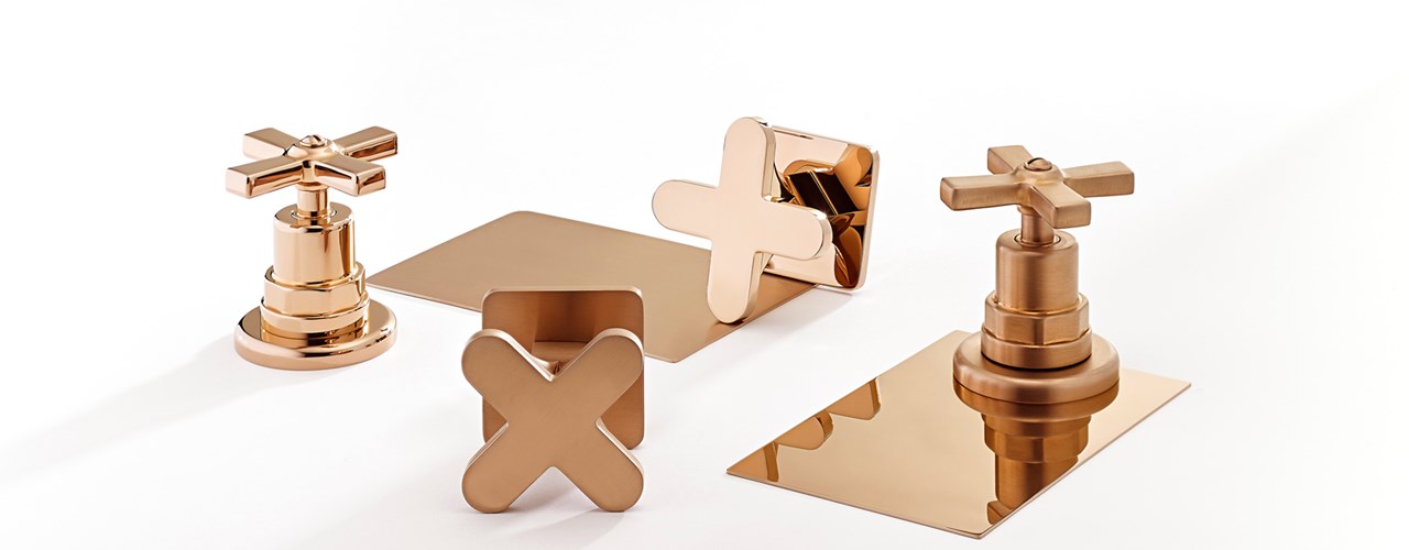 THG Paris предлагает новую отделку Blush, которая гармонично сочетает медные и розовые оттенки. Она универсальна и может действовать как нейтральная в различных средах, от традиционных до современных интерьеров.