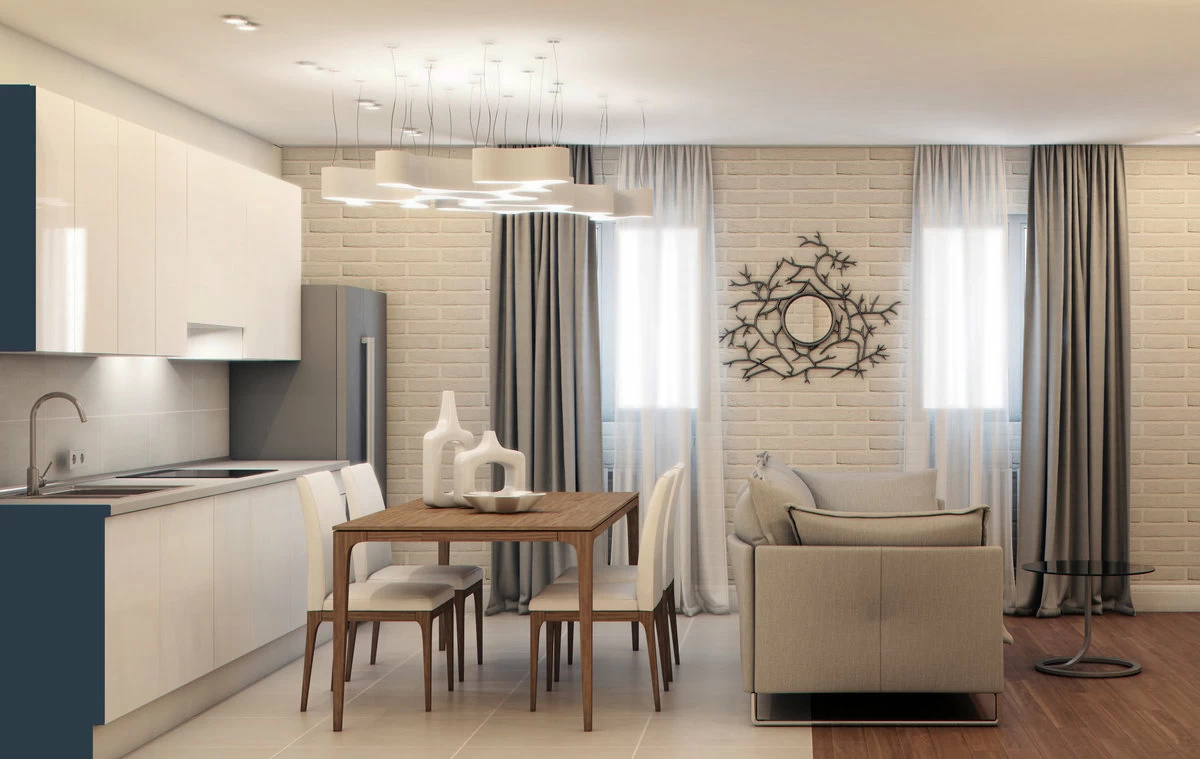 Особенности выбора штор для кухни-гостиной