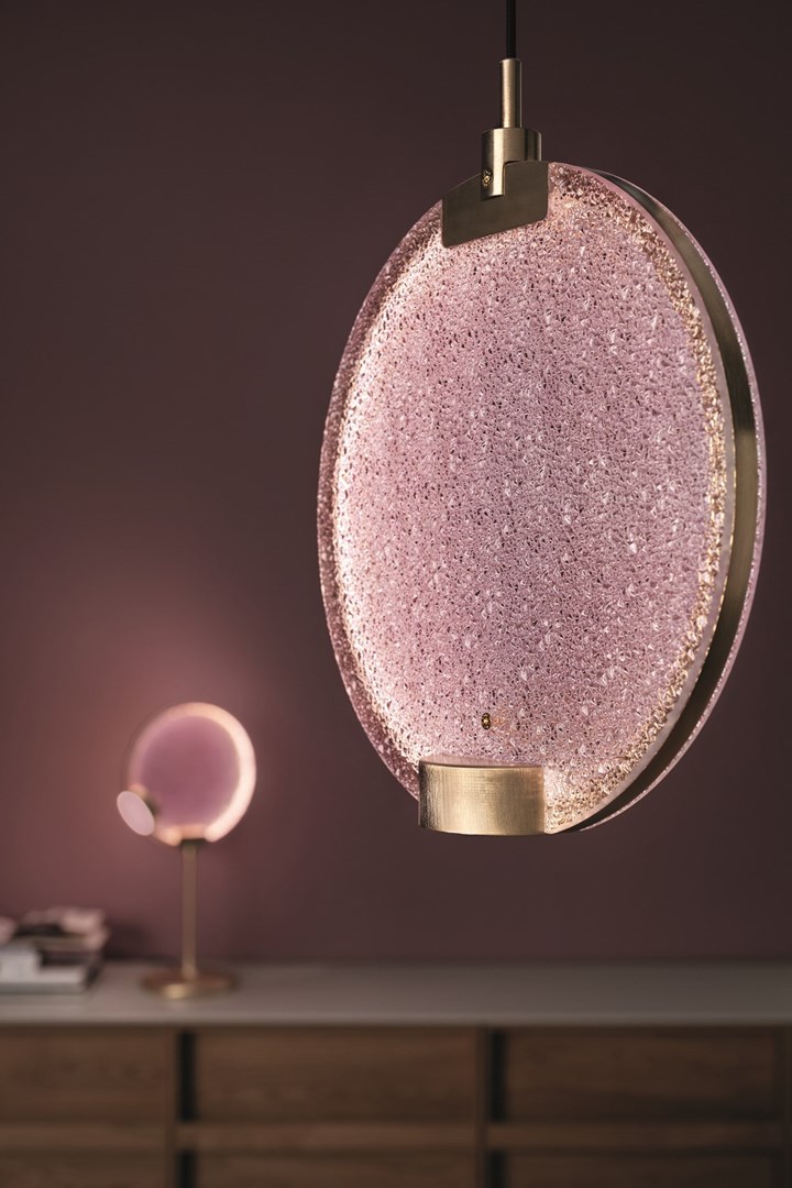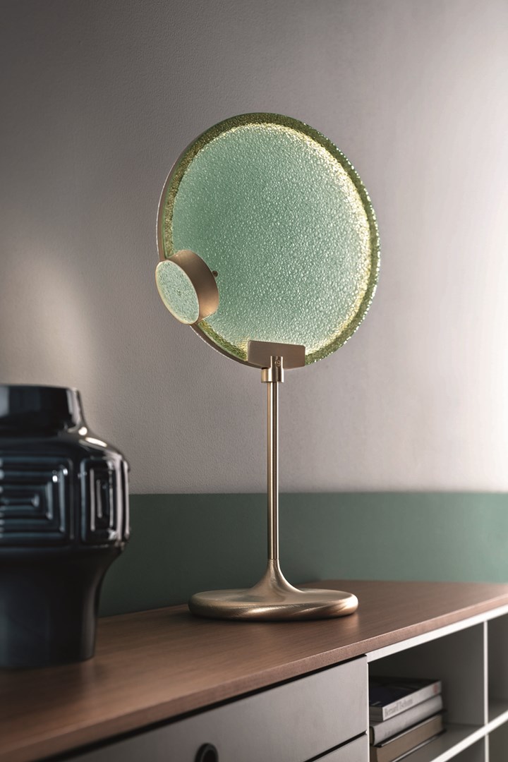 Коллекция Horo предлагает широкий выбор светильников, от подвесных до настольных, отличающихся призматическим стеклянным диском и золотыми металлическими элементами.