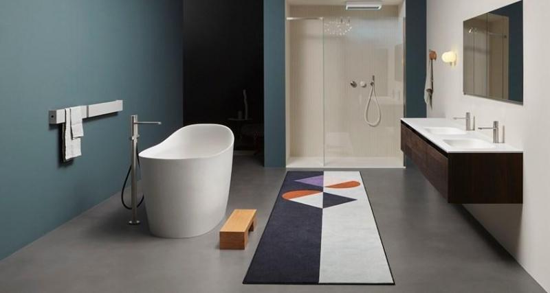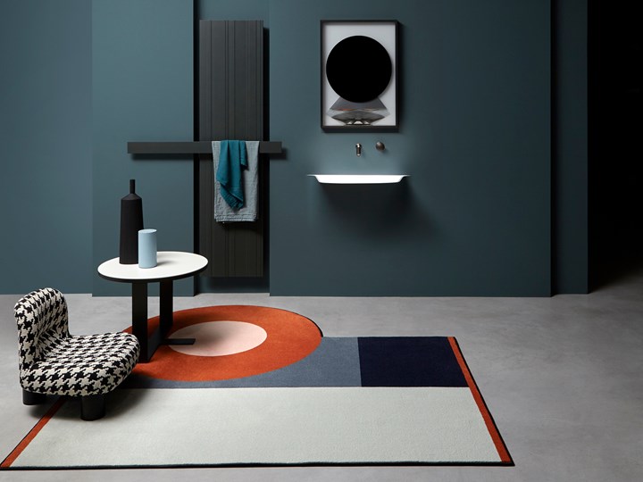 Обновленное пространство antoniolupi отличается уникальными цветовыми решениями и сценографическими декорациями, создающими гармоничный интерьер.