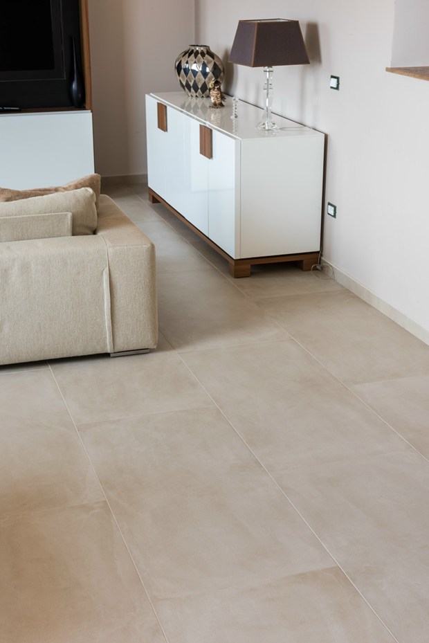 Коллекция One от Ceramiche Caesar предлагает решения для гостиной и ванной комнаты, подчеркивая элегантность и естественность пространства.