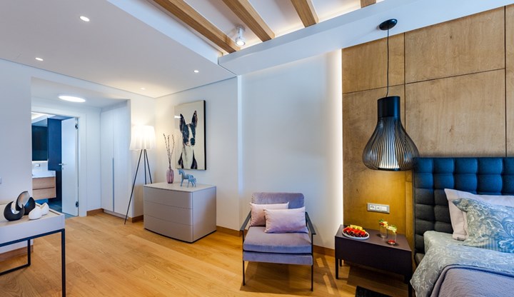 Коллекция TYPE от Unikolegno с отделками UV OIL TRAFALGAR и UV OIL предлагает уникальную яркость и защиту от износа. Натуральный свет через большие окна подчеркивает естественность и тепло дерева, делая интерьер более уютным.