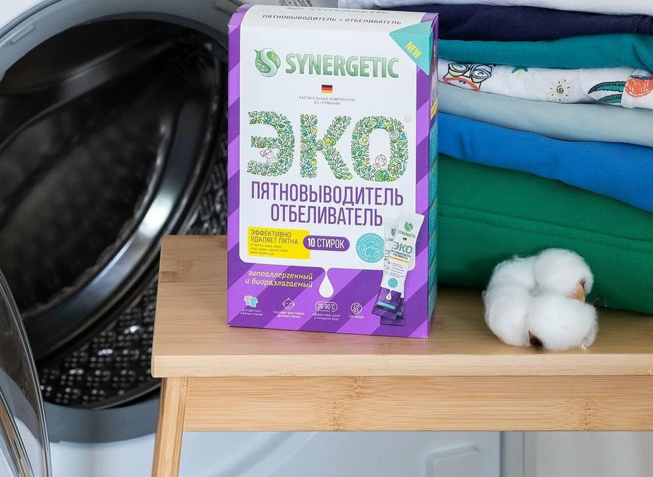 Компания SYNERGETIC предлагает отбеливатели, произведенные на основе растительных компонентов, что делает их гипоаллергенными и безопасными для использования. Эти средства обладают антибактериальными и биоразлагаемыми свойствами.