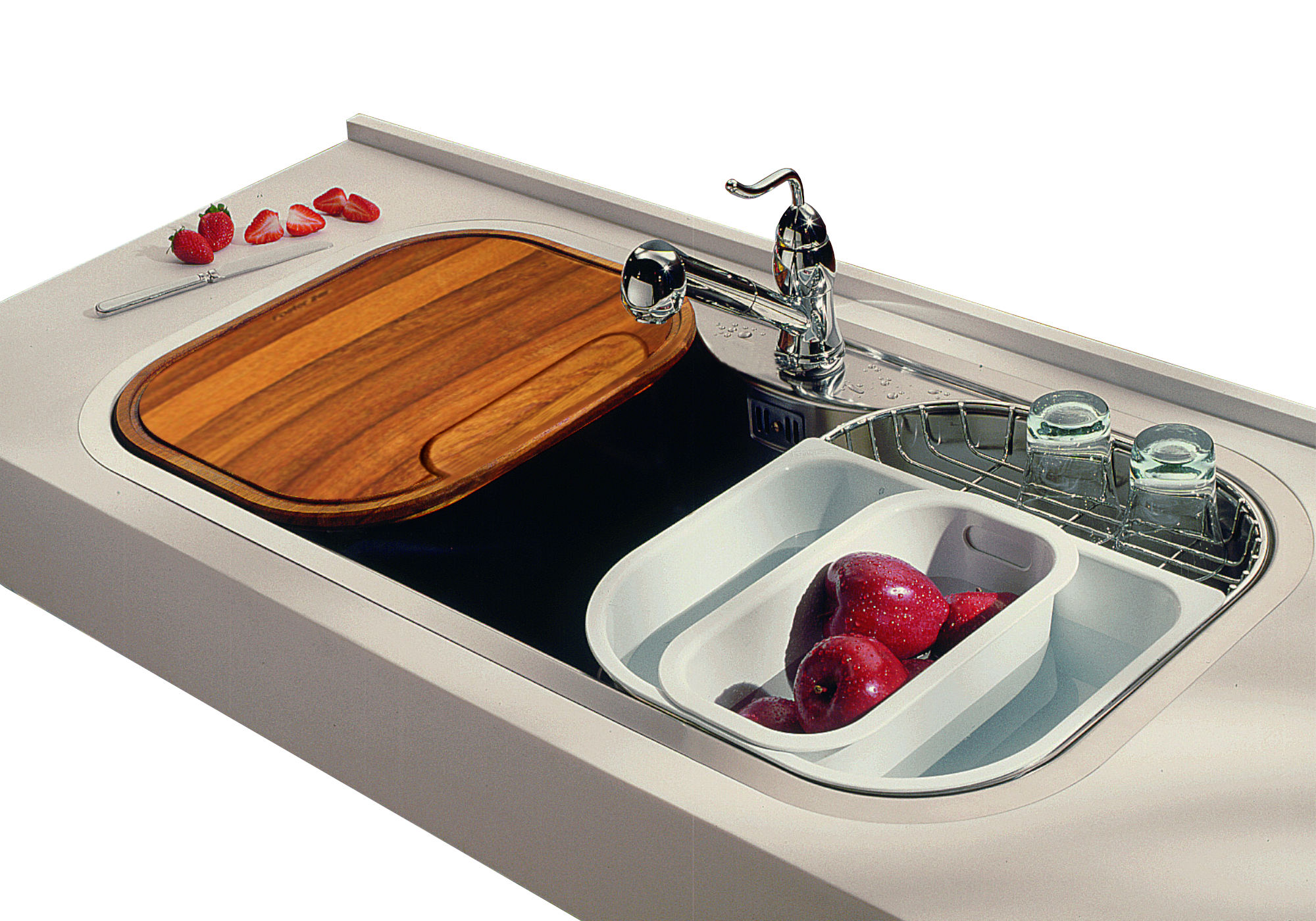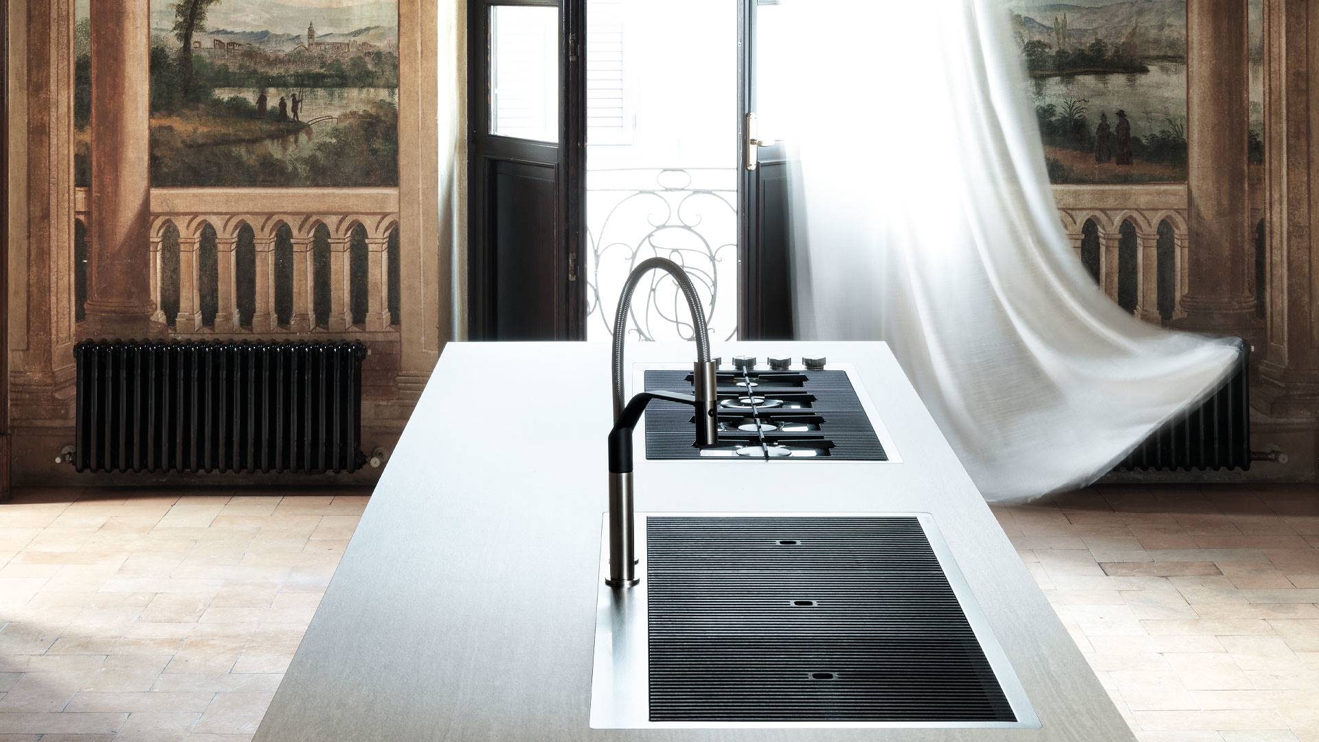 Для приготовления и практичные встроенные решения для ополаскивания и сушки посуды, большие и вместительные ванны, пользующиеся успехом во всем мире, которые позволяют мойке стать местом для мытья и приготовления пищи, и рождаются новые варочные панели функциональность и дизайн. Новый век открывается коллекцией Rondò, в которой уникальный и изысканный дизайн сочетается с компактностью продуктов: мойка, варочная панель и вытяжка созданы для того, чтобы быть элегантными и функциональными в небольших помещениях. За эти годы была создана блестящая стальная поверхность, которая легко чистится и устойчива к царапинам. Первое десятилетие 2000-х годов характеризовалось концепцией дизайна для всех, а значит, продуктом, доступным и применимым для всех, и престижным сотрудничеством, таким как создание линейки бытовой техники с Alessi.