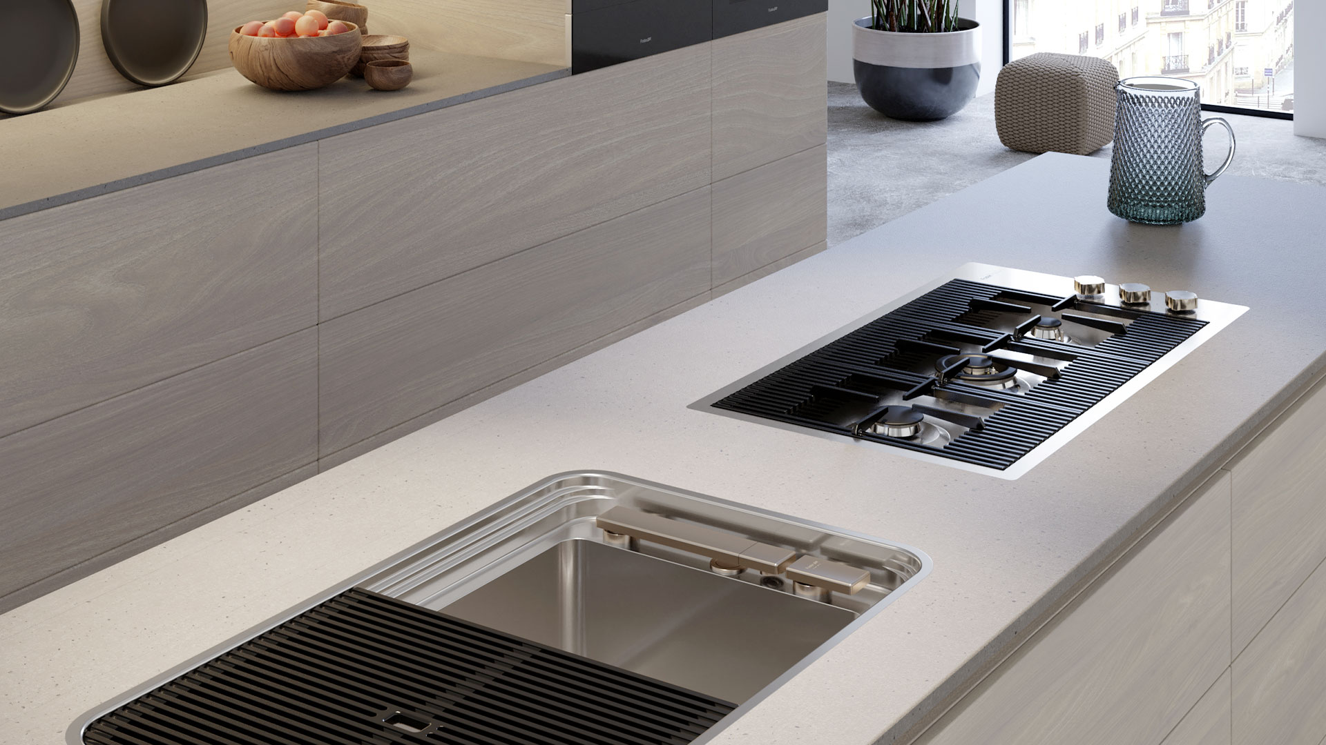 1034056 Кухонная мойка Milanello Gun Metal workstation 1034 056 Foster