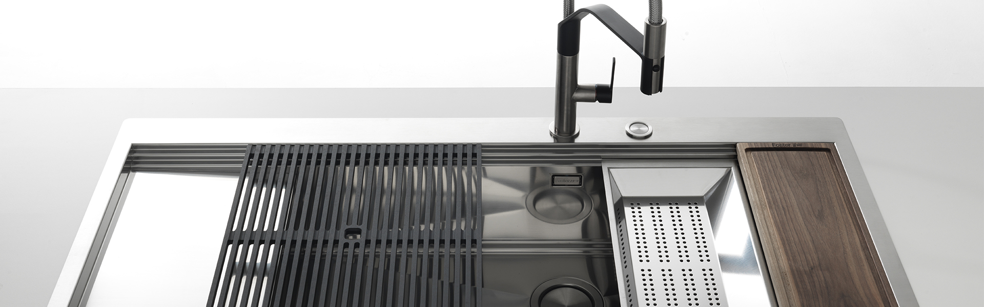 Качества и надежности, бережного отношения к окружающей среде, индивидуализации, элегантности и производительности, гарантируя дизайн продуктов, которые одновременно функциональны, всегда уникальны и новаторски, с вниманием к выбору и предложению материалов. От раковин до варочных панелей: эволюция Foster Специализация Foster всегда шла в ногу со временем, что привело к тому, что компания стала ориентиром в отрасли благодаря своей известной элегантности и изысканному дизайну, способному сочетать в себе красоту и функциональность. Семидесятые годы ознаменовали рождение технологии глубокой вытяжки и консолидации производства за счет встроенных мойок, эволюции модульной кухни и распространения мойки из нержавеющей стали.
