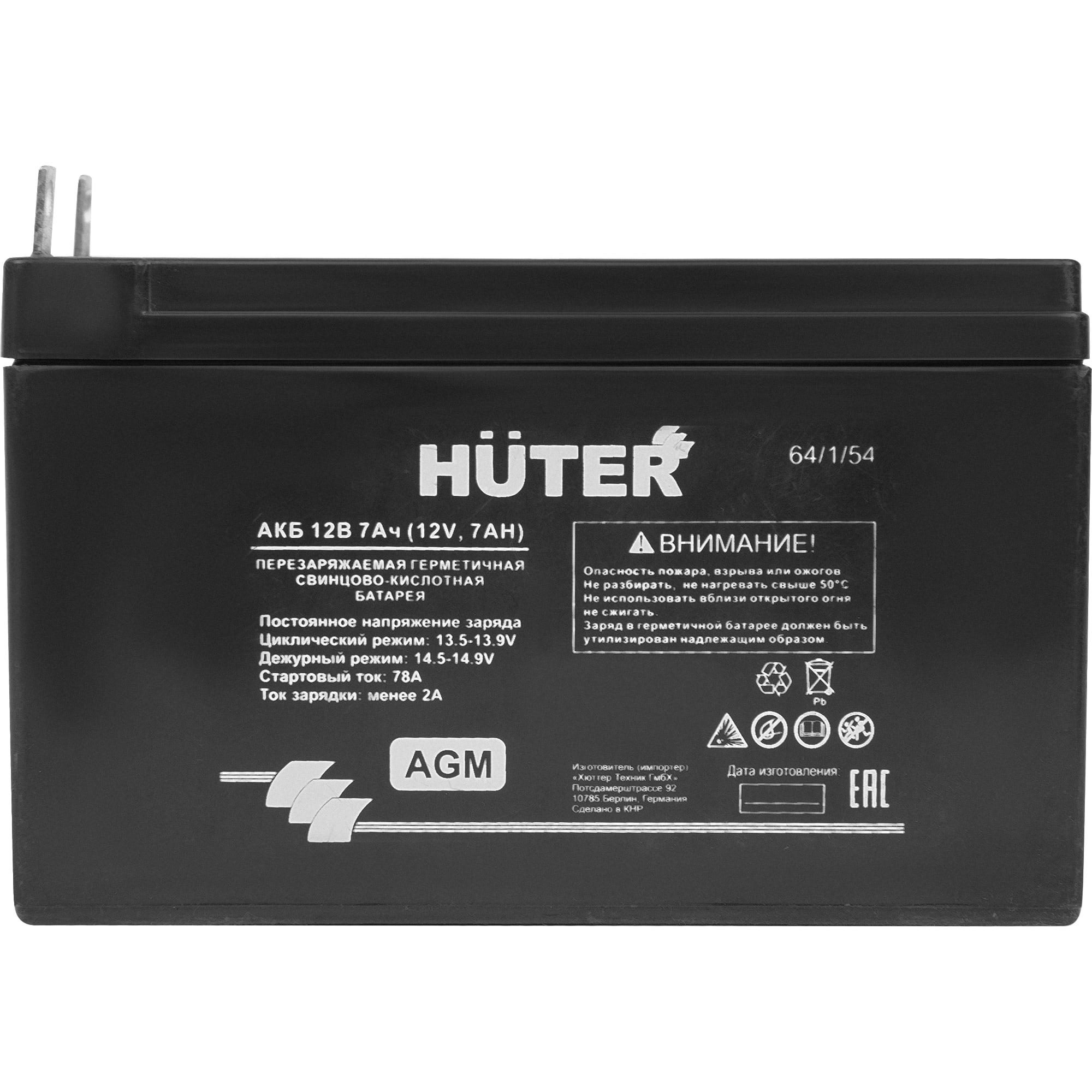 Аккумулятор HUTER 12V 7Ач для бензогенераторов с технологией AGM 86399102 STLM-0068575