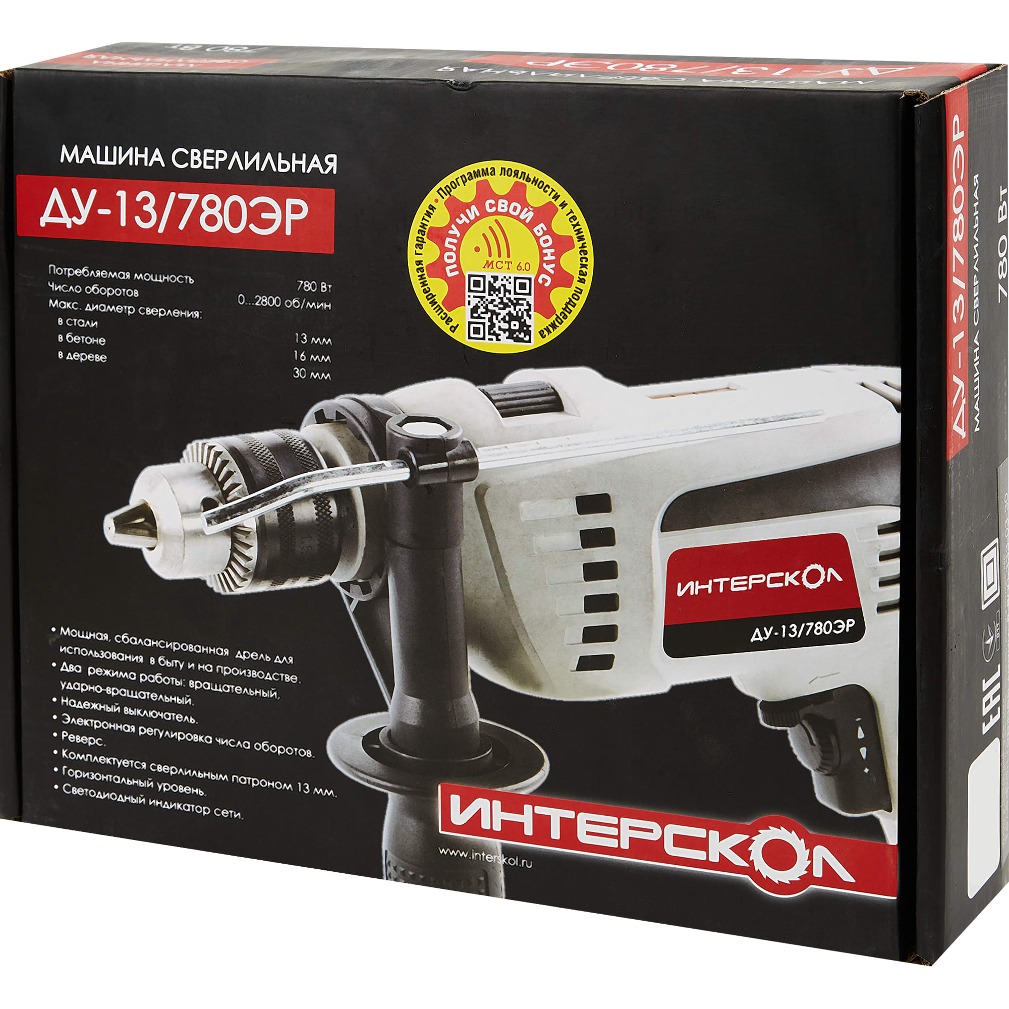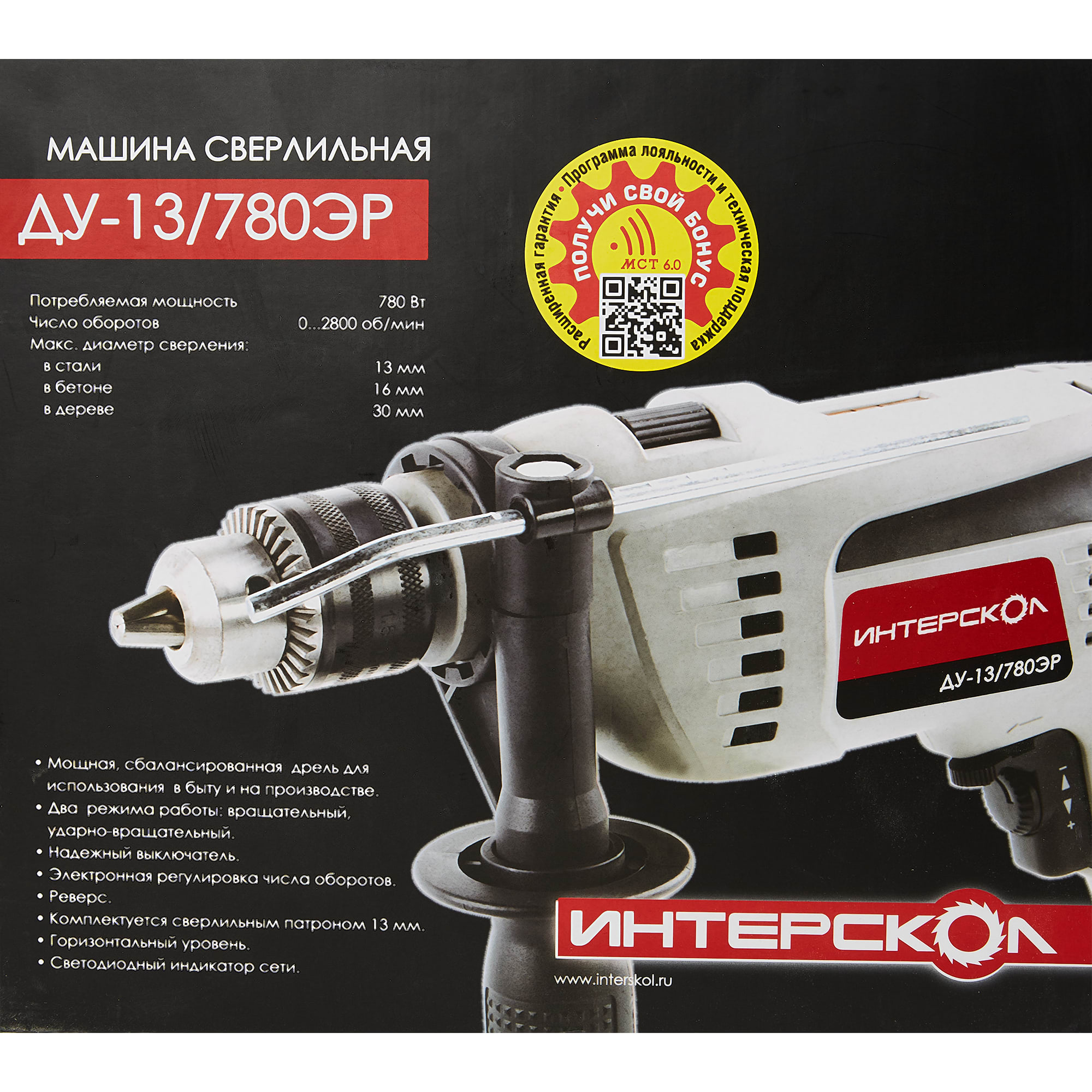 Ударная дрель Интерскол ДУ-13/780ЭР с держателем для второй руки 11751651 STLM-0001474