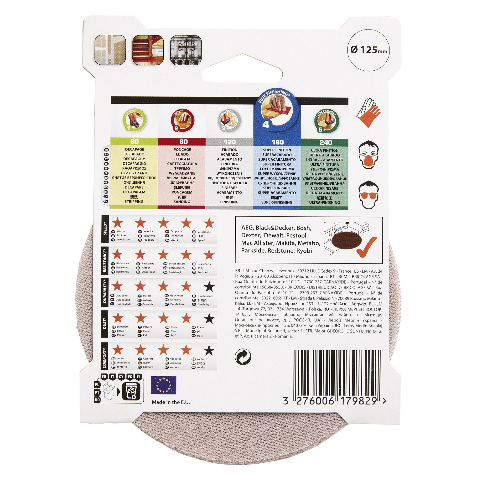 • Зернистость P180 для устранения мелких неровностей