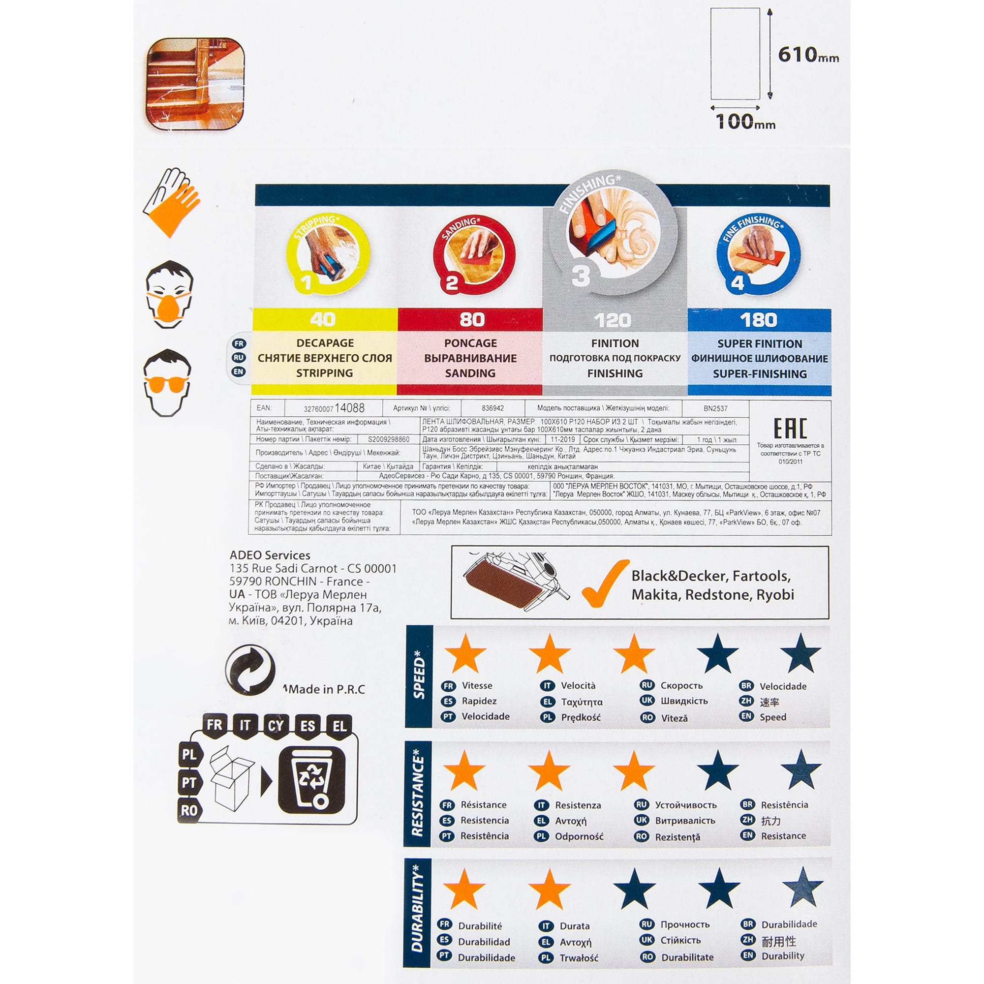 82307198 Лента шлифовальная Dexter P120 610x100 мм, 2 шт. STLM-0024326