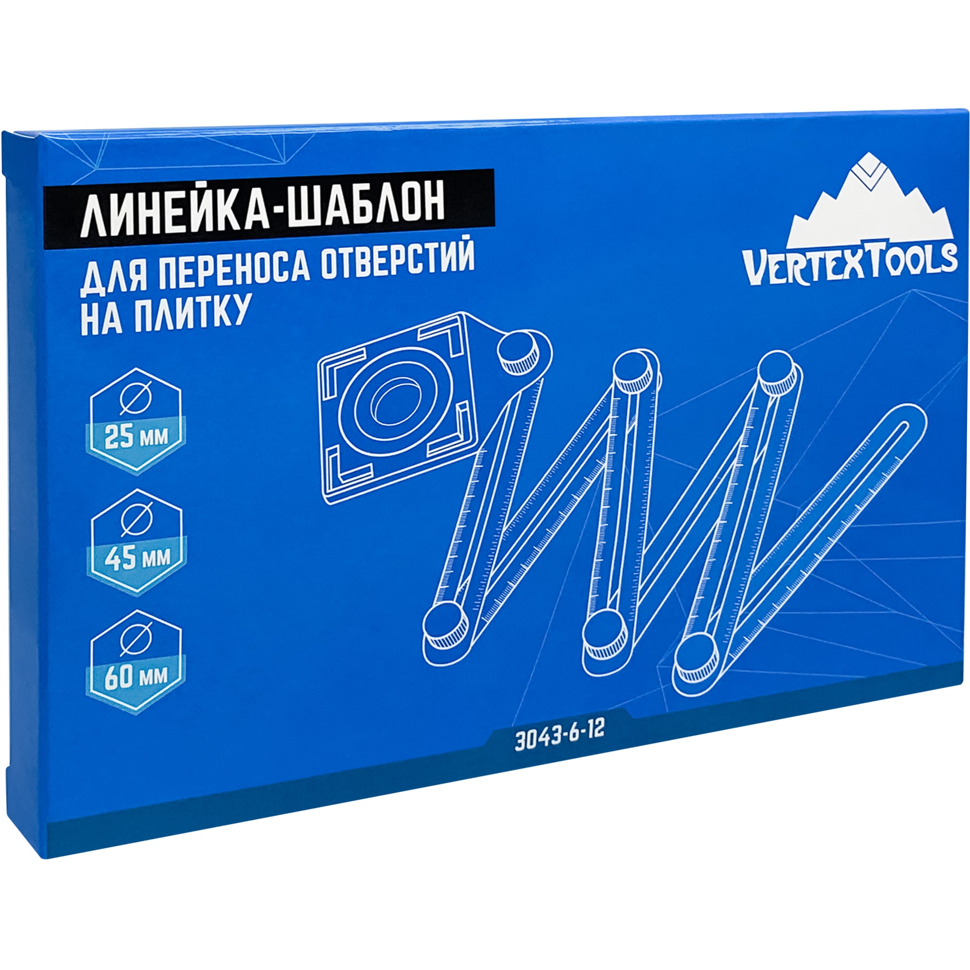 **Линейка-шаблон Vertextools** предназначена для точного переноса отверстий. Используется при строительных работах по дереву, для проектирования и рисования. Углы регулируются при помощи специальных винтов. # Особенности: - имеет 6 секций; - длина — 180 мм.