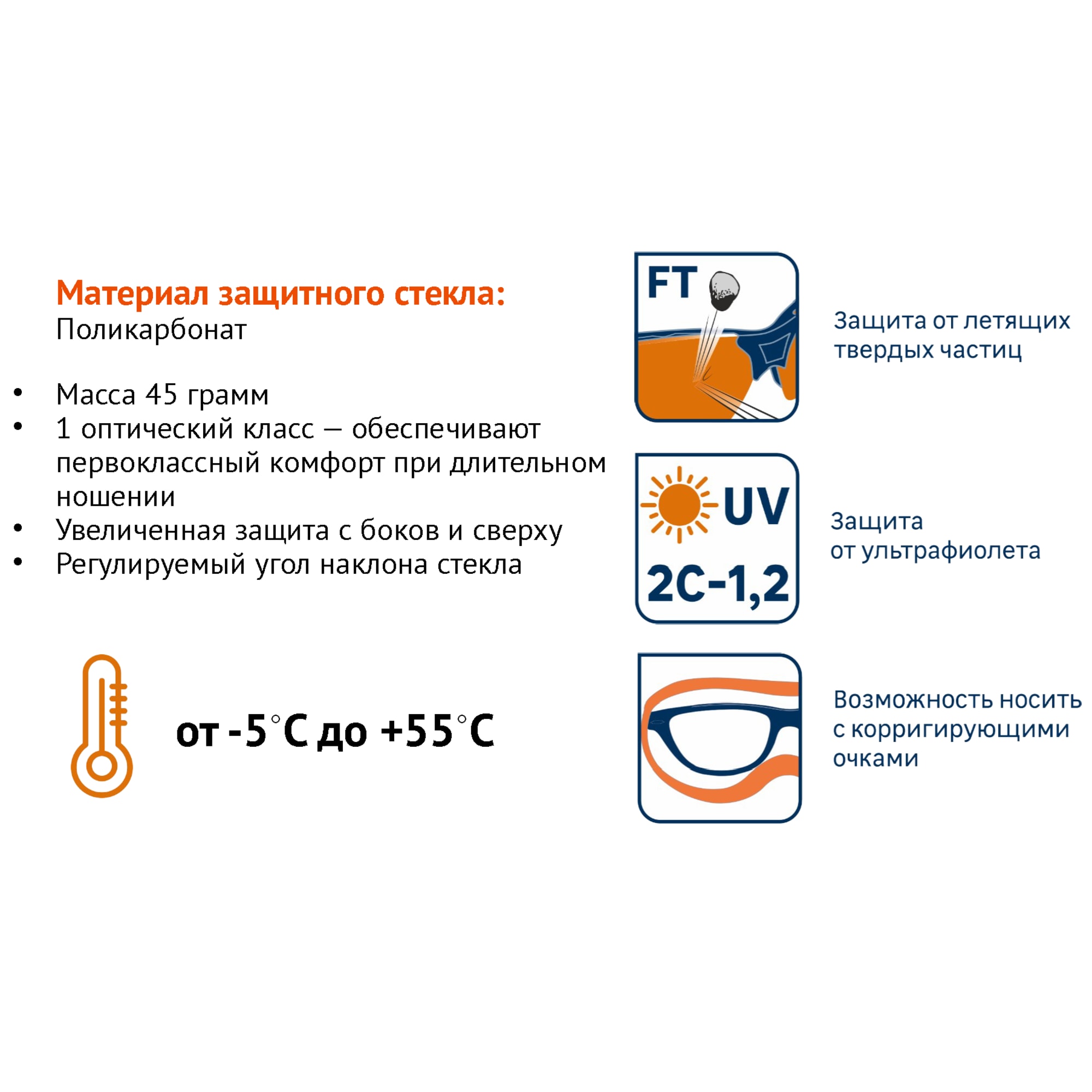 Регулярно очищайте линзы мягкой тканью для поддержания оптимальной видимости. Храните очки в защитном чехле для предотвращения повреждений. Проверяйте целостность конструкции перед каждым использованием.