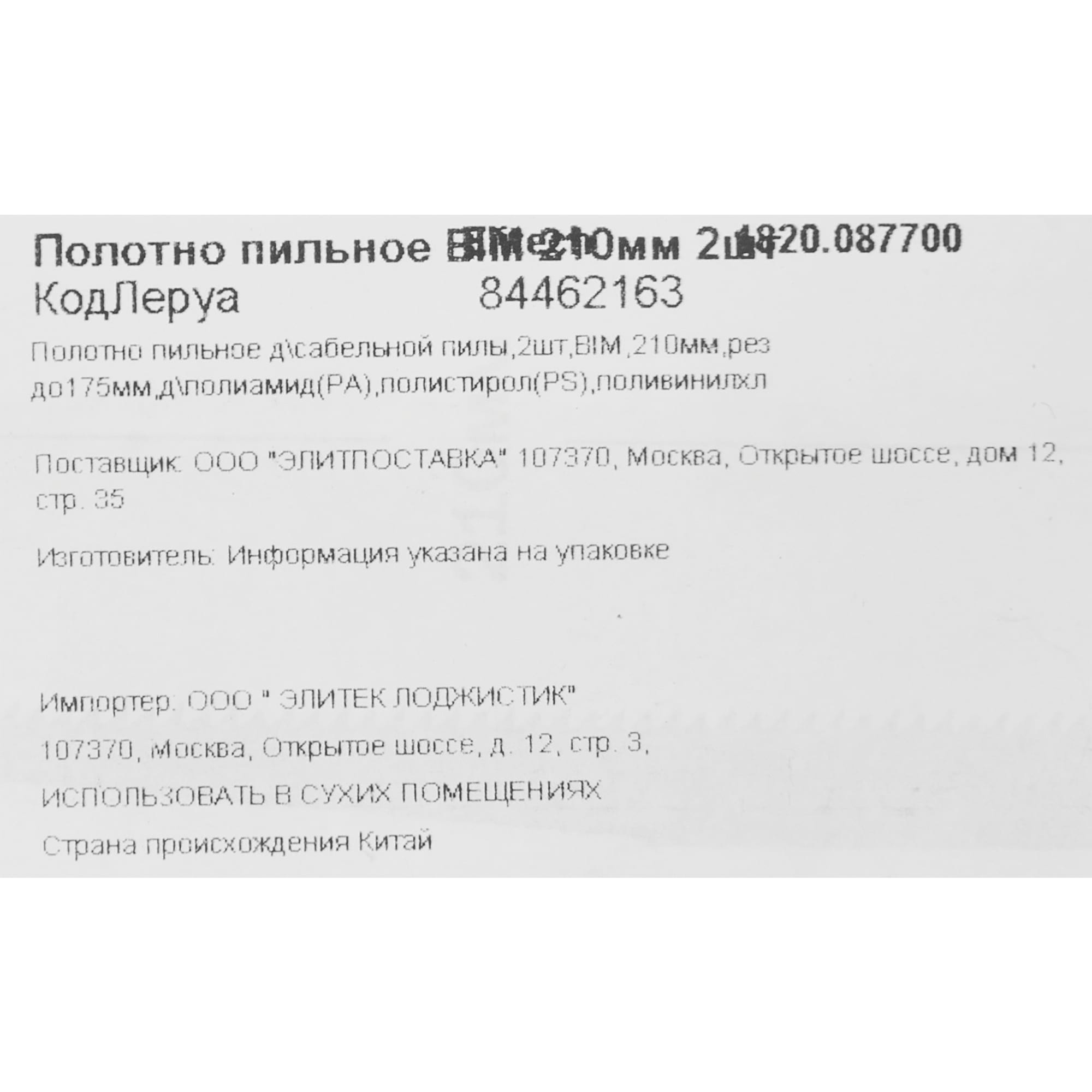 Биметаллические пилки Elitech для сабельной пилы по пластику 210 мм (2 шт) 84462163 STLM-0050331