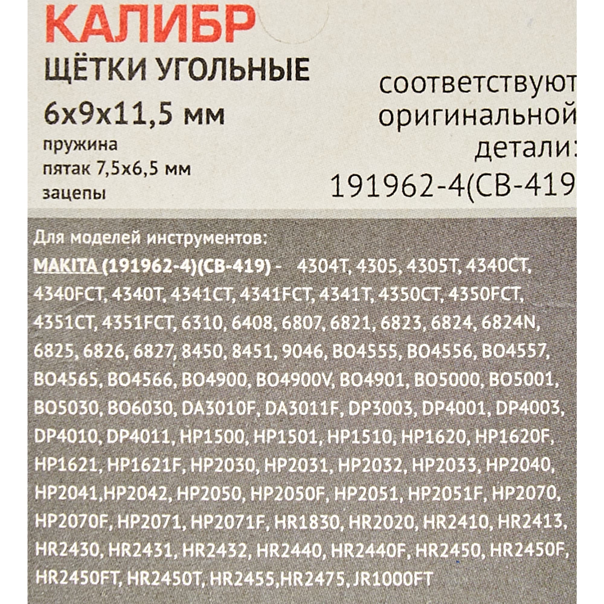 Совместимость с моделью MAKITA (191962-4) (CB-419) - 4304T, 4305, 4305T, 4340CT, 4340FCT, 4340T, 4341CT, 4341FCT, 4341T, 4350CT, 4350FCT, 4351CT, 4351FCT