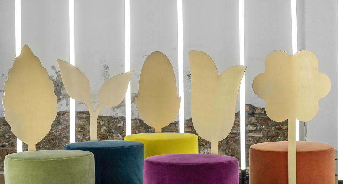 Secolo Daisy Мягкий пуф со спинкой Маргаритка из сатинированной стали
