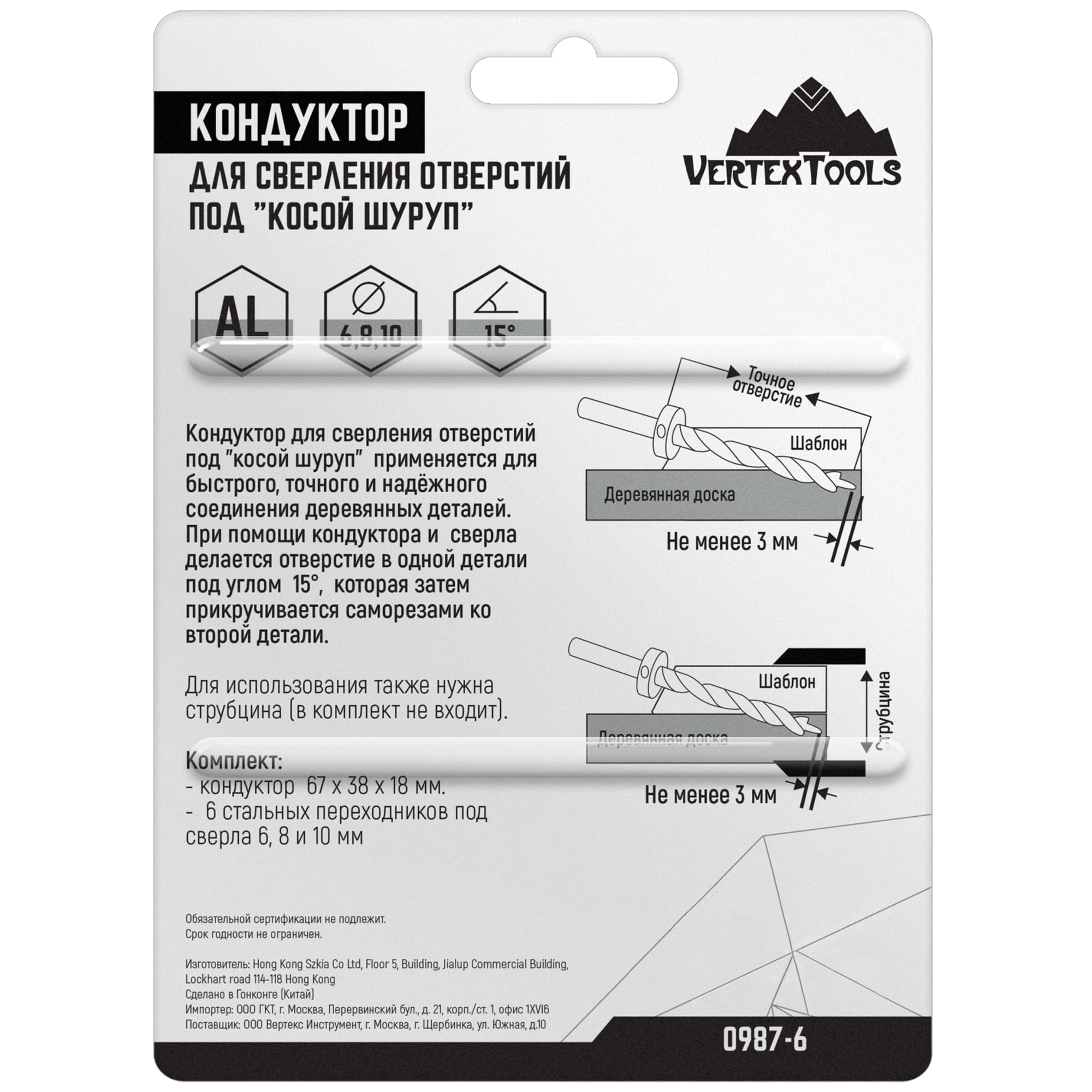 Кондуктор для мебели Vertextools с углом 15° и 6 переходниками 85170613 STLM-0059412 предоставляется с гарантией 12 месяцев с момента покупки.