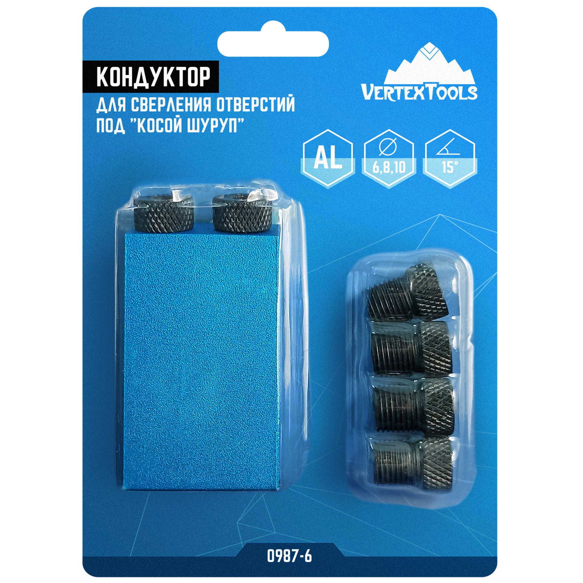 Шаблон Vertextools обеспечивает идеальное сверление под углом 15° для надежного соединения деталей косым шурупом. Алюминиевый кондуктор гарантирует долговечность и стабильность в работе.