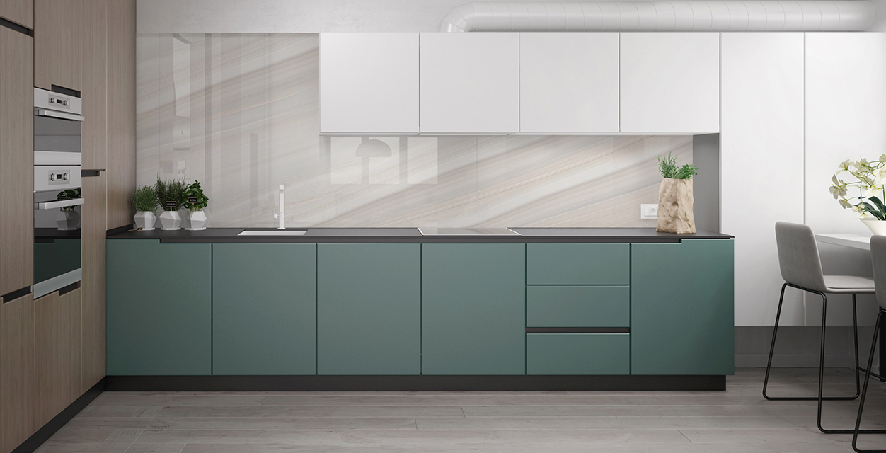Возможность размещения в зонах сильного нагрева или непосредственно за газовой варочной поверхностью. Лучшая альтернатива неустойчивым к сильному нагреву материалам, таким как искусственный камень.