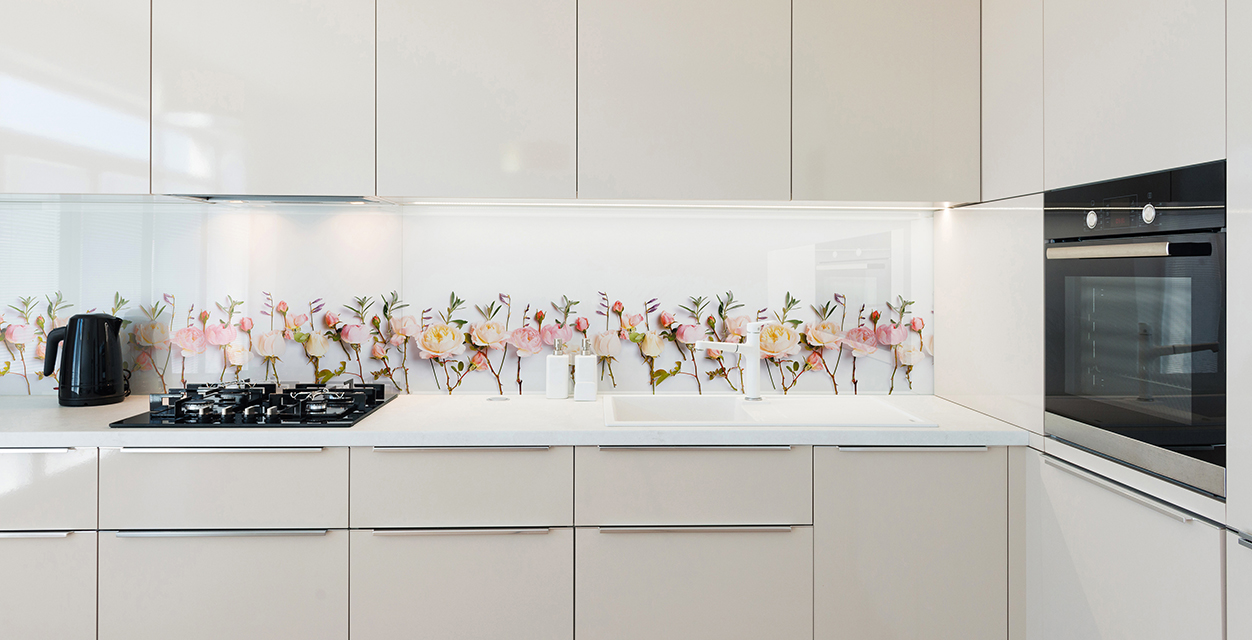 Достаточно стеклоочистителя и влажной тряпочки. На пёстрых и светлых декорах стекла брызги воды, кипящего масла и других жидностей совсем незаметны. Максимальный блеск стеклу придаст тканевая салфетка для полировки.