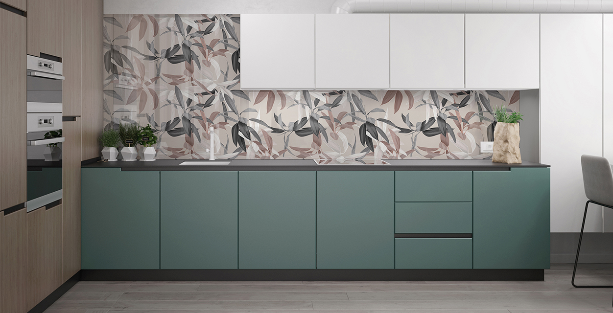 Стекло зеркалит, визуально увеличивая размеры помещения, расширяя пространство. Это ключевой момент в дизайне малогабаритных кухонь и дополнительный плюс в оформлении больших просторных помещений.