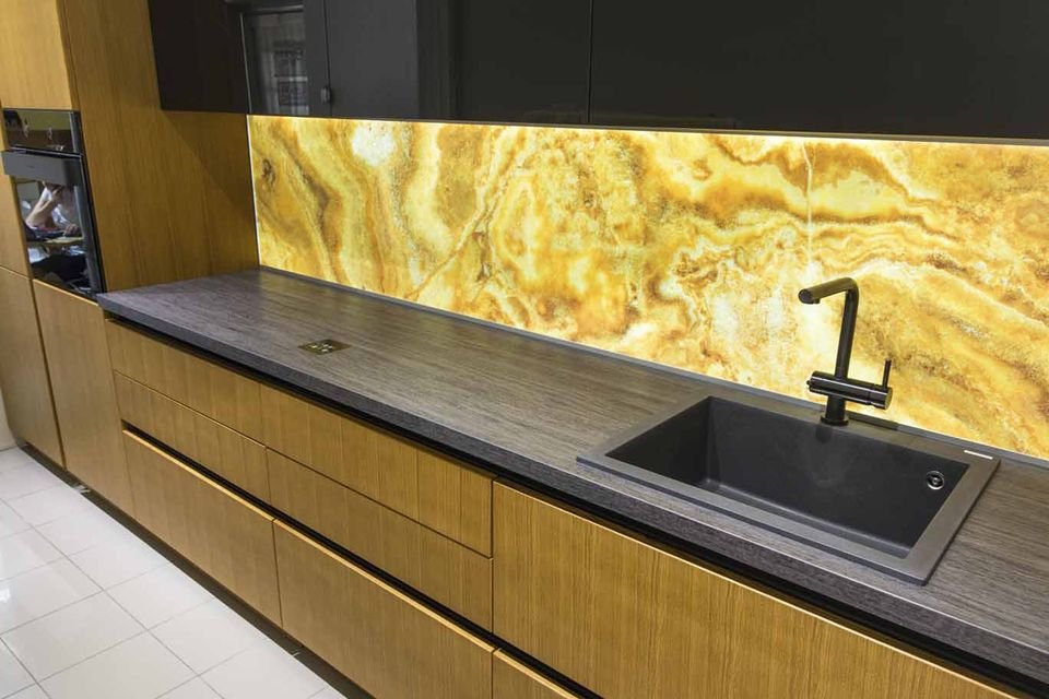 Возможность размещения в зонах сильного нагрева или непосредственно за газовой варочной поверхностью. Лучшая альтернатива неустойчивым к сильному нагреву материалам, таким как искусственный камень.