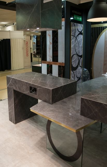 Большой размер и ровная поверхность керамики позволили расширить сферу применения керамики в дизайне и изготавливать из нее столешницы, равных по свойствам которым еще нет.