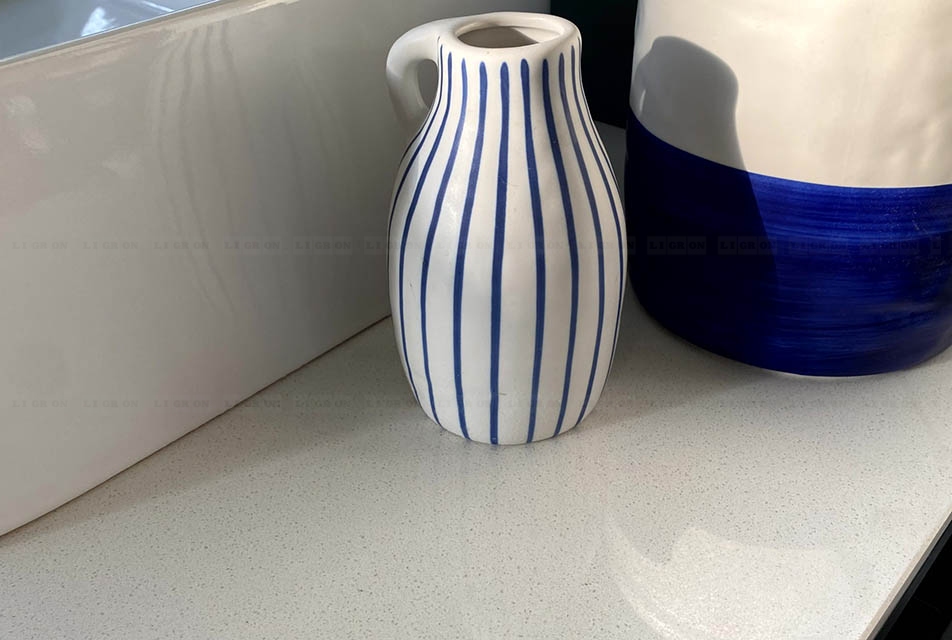 Quarzelan от Ligron — это кварцевый композитный материал, который на 95 % состоит из кристаллов натурального кварца. К кварцу добавляются высококачественные экологически чистые минеральные красители и полимерные смолы. Для получения более эксклюзивных и эффектных декоров добавляются мелкие кусочки стекла или зеркальные кристаллы. Впоследствии из данной смеси получаются плиты путём уплотнения методом вибрации под вакуумом. Таким образом Quarzelan сохраняет присущую кварцу твёрдость и своим видом полностью имитирует натуральный кварц, как внешне, так и на ощупь. При этом Quarzelan обладает исключительными свойствами, превосходящими все другие материалы, используемые для изготовления столешниц.Quarzelan очень устойчив против царапин и ударов, отталкивает грязь и бактерии, жароустойчив. В отличие от гранита и мрамора поверхность Quarzelan не пористая, поэтому различные химикаты и кислоты, фруктовые соки и вино не могут проникать внутрь и таким образом разрушать поверхность или вызывать изменение цвета. В повседневном применении поверхность Quarzelan не требует никакого специального ухода. Quarzelan - великолепный материал для изготовления кухонных столешниц и столешниц в ванные комнаты.