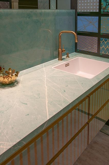 Большой размер и ровная поверхность керамики позволили расширить сферу применения керамики в дизайне и изготавливать из нее столешницы, равных по свойствам которым еще нет.