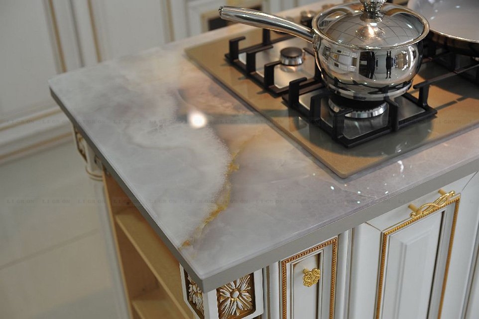 Возможность размещения в зонах сильного нагрева или непосредственно за газовой варочной поверхностью. Лучшая альтернатива неустойчивым к сильному нагреву материалам, таким как искусственный камень.