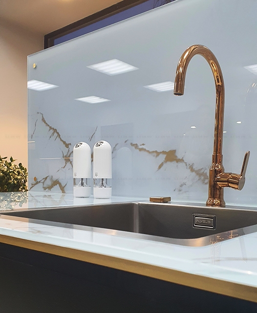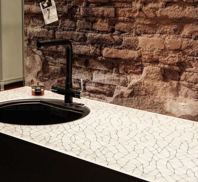 Возможность размещения в зонах сильного нагрева или непосредственно за газовой варочной поверхностью. Лучшая альтернатива неустойчивым к сильному нагреву материалам, таким как искусственный камень.