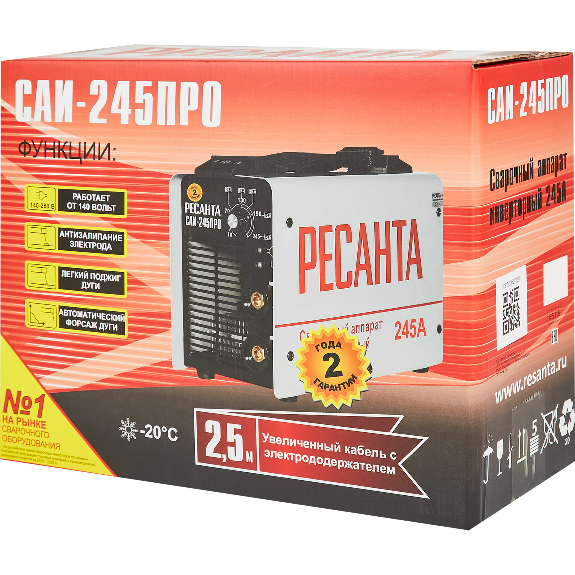 Инверторный сварочный аппарат Ресанта САИ-245ПРО для профессиональных работ 84882208 STLM-0056955 предоставляется с гарантией 12 месяцев с момента покупки.