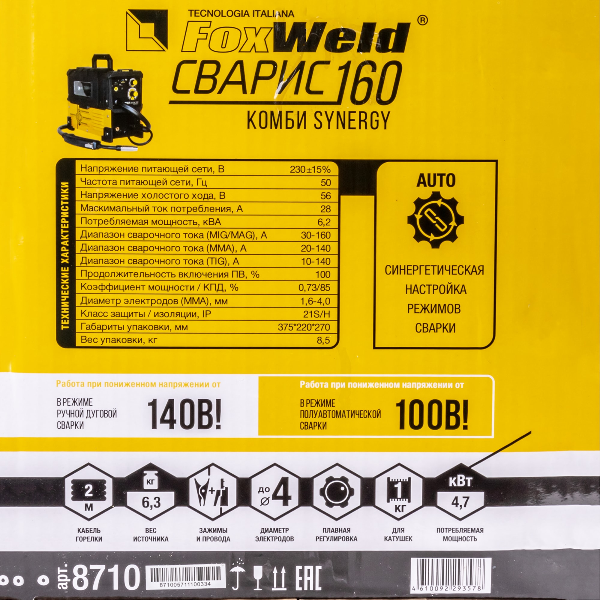 FoxWeld Сварис 160 Комби Synergy - профессиональный сварочный инвертор 83419383 STLM-0041232