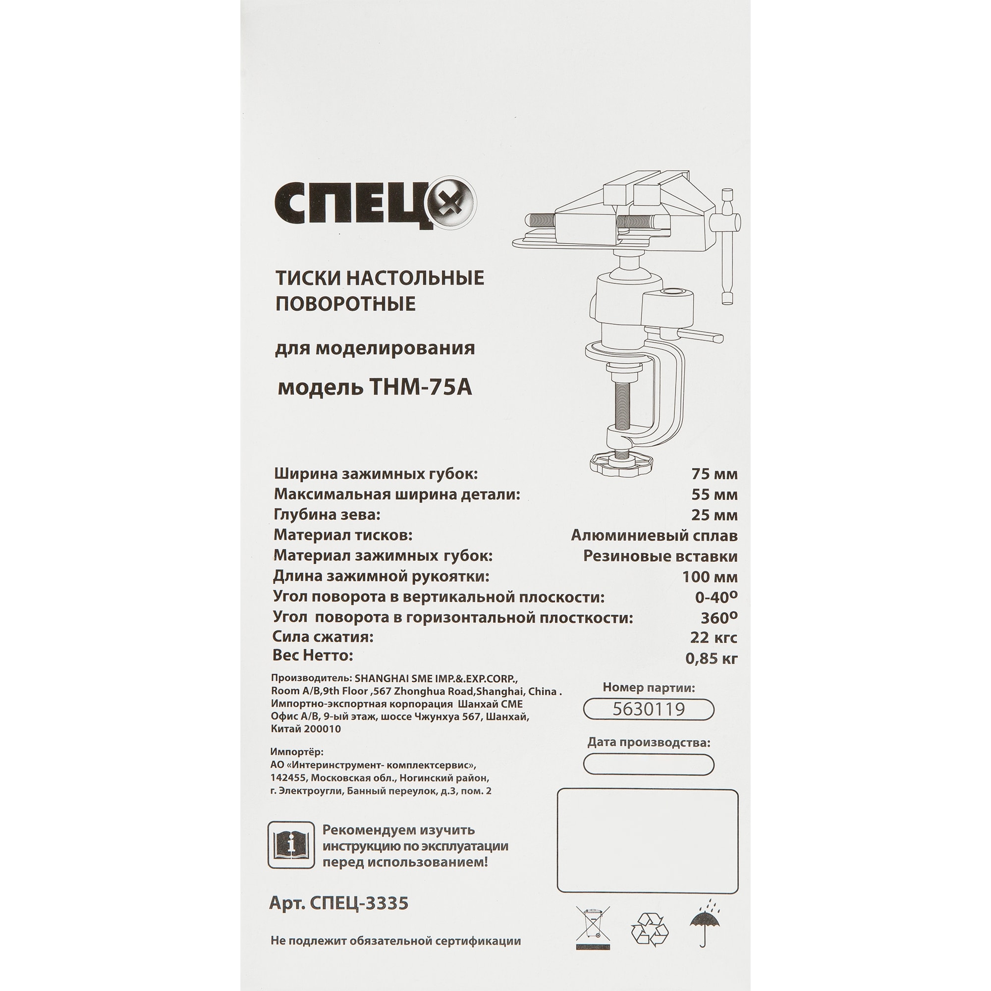 Поворотные тиски СПЕЦ ТНМ-75А для точного моделирования 82047644 STLM-0018350 предоставляется с гарантией 12 месяцев с момента покупки.