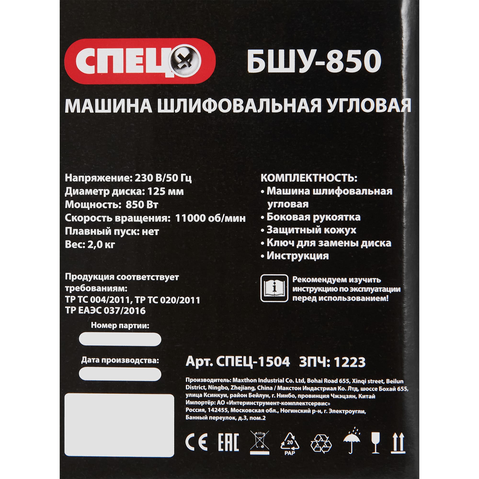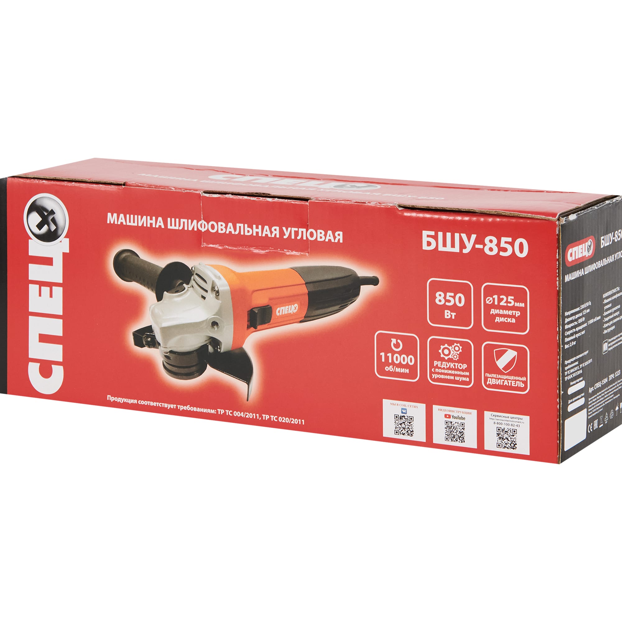 Угловая шлифмашина СПЕЦ БШУ-850 для профессиональной обработки материалов 82245641 STLM-0022966 предоставляется с гарантией 12 месяцев с момента покупки.
